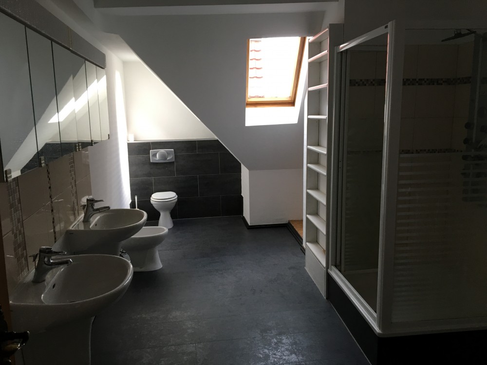 Es handelt sich um ein großzügiges Zweifamilienhaus mit Anbau. Im Untergeschoss kann eine dritte Wohnung eingerichtet werden. Das Haus mit einer Gesamtnutzfläche von 440m² wurde um 1900 gebaut und im Jahr 1992 umfassend saniert. Jede der Wohnungen verfügt über Panoramafenster zum schönen Garten, eine Einbauküche und ein komfortables Bad. Die Wohnung im ersten OG verfügt zusätzlich über einen Kamin. Zusätzlich befinden sich im Haus mehrere Gäste WC. Zum Haus gehört auch ein großer Partyraum mit einer vollständig eingerichteten Bar. Weiterhin gehören ein schöner Erholungsgarten und 2 Garagen zum Grundstück. Das Untergeschoss ist in Stehhöhe ausgebaut und beheizt. Ein Raum des Kellers ist ein uriger, uralter – aber sehr gut erhaltener – Gewölbekeller, der als Weinlager oder Partykeller genutzt werden kann.