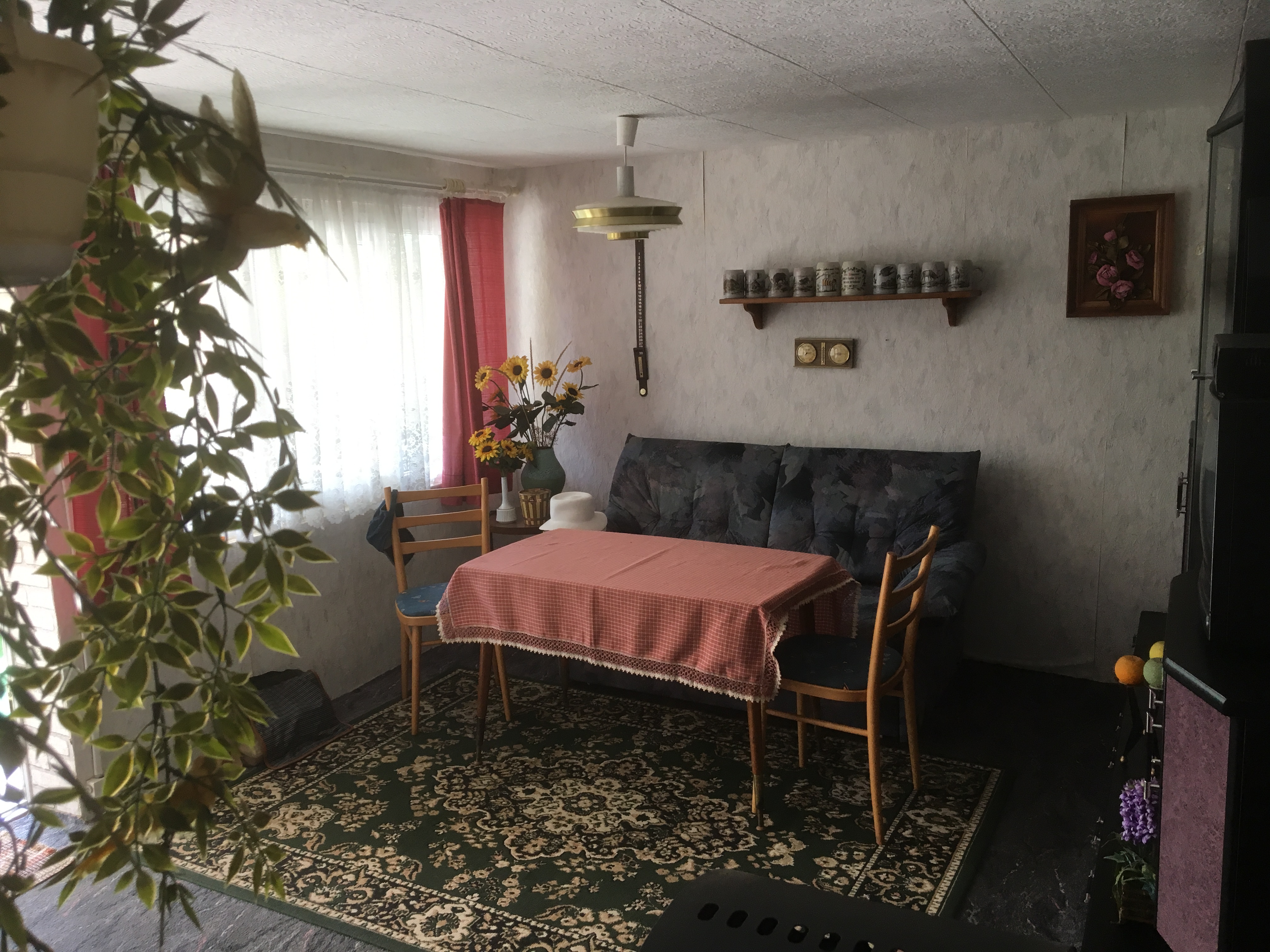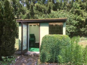Der Bungalow bietet mit 36 qm Wohnfläche genügend Platz für eine Wochenendnutzung und hat folgende Aufteilung: Wohnzimmer mit Küchenzeile, Schlafzimmer, Küche und Terrasse. Auf dem Grundstück befindet sich ein Sanitärgebäude mit Trockentoilette und Dusche. Eine Umfunktionierung der Toilette als WC sollte dem Handwerker mit wenig Aufwand gelingen.Das Gelände wie auch der Bungalow sind in einem guten Erhaltungszustand.