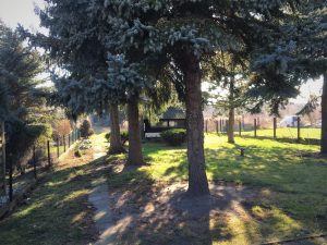 Das Grundstück verfügt ferner über einiges Nebengelass, wie eine Doppelgarage, mehrere Schuppen und ein ehemaliges Sommerhaus mit Terrasse zum Garten. Der Garten wird von einem Nadelbaumbestand dominiert. Mitten im Garten befindet sich ein Imkerhäuschen, dass dem Vorbesitzer zur Bienenzucht und Honiggewinnung diente.