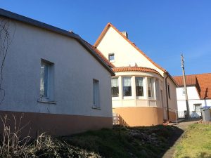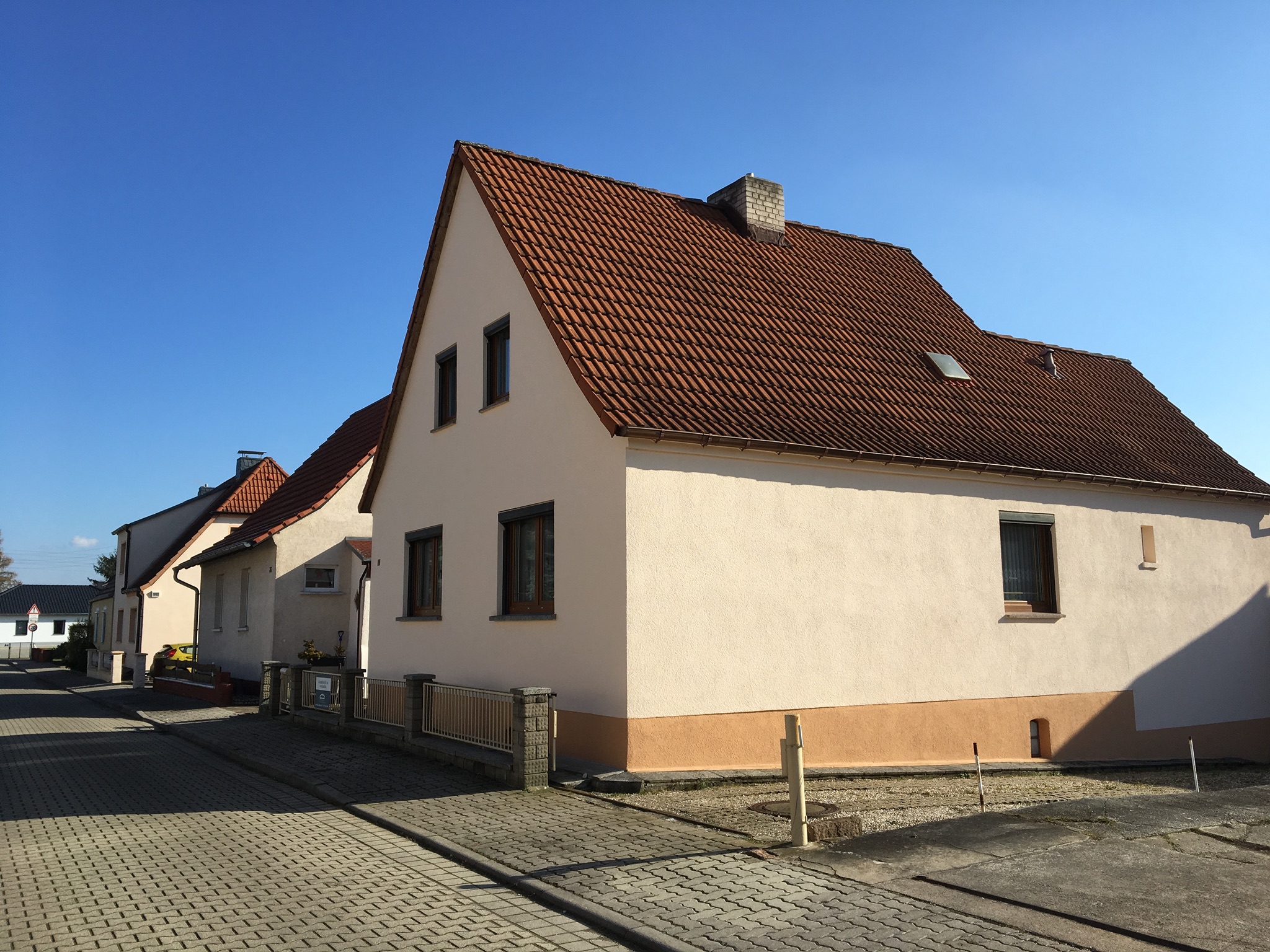Das Einfamilienhaus befindet sich in einer ab 1950 errichteten Siedlung in Teutschenthal OT Eisdorf. Diese Siedlung prägt eine Bebauung mit freistehenden Einfamilienhäusern und Doppelhäusern. Jedes Haus hatte früher seinen Stall und eigenen Garten zur Eigenversorgung mit Haustieren, Obst und Gemüse. Verkehrstechnisch ist diese Siedlung optimal gelegen. Bus- und Zughaltestellen befinden sich in wenigen hundert Meter Entfernung und die Bundesstraße B80 sowie die Autobahn sind in wenigen Fahrminuten erreichbar. Die Stadt Halle (Saale) ist somit in 20 Minuten zu erreichen.