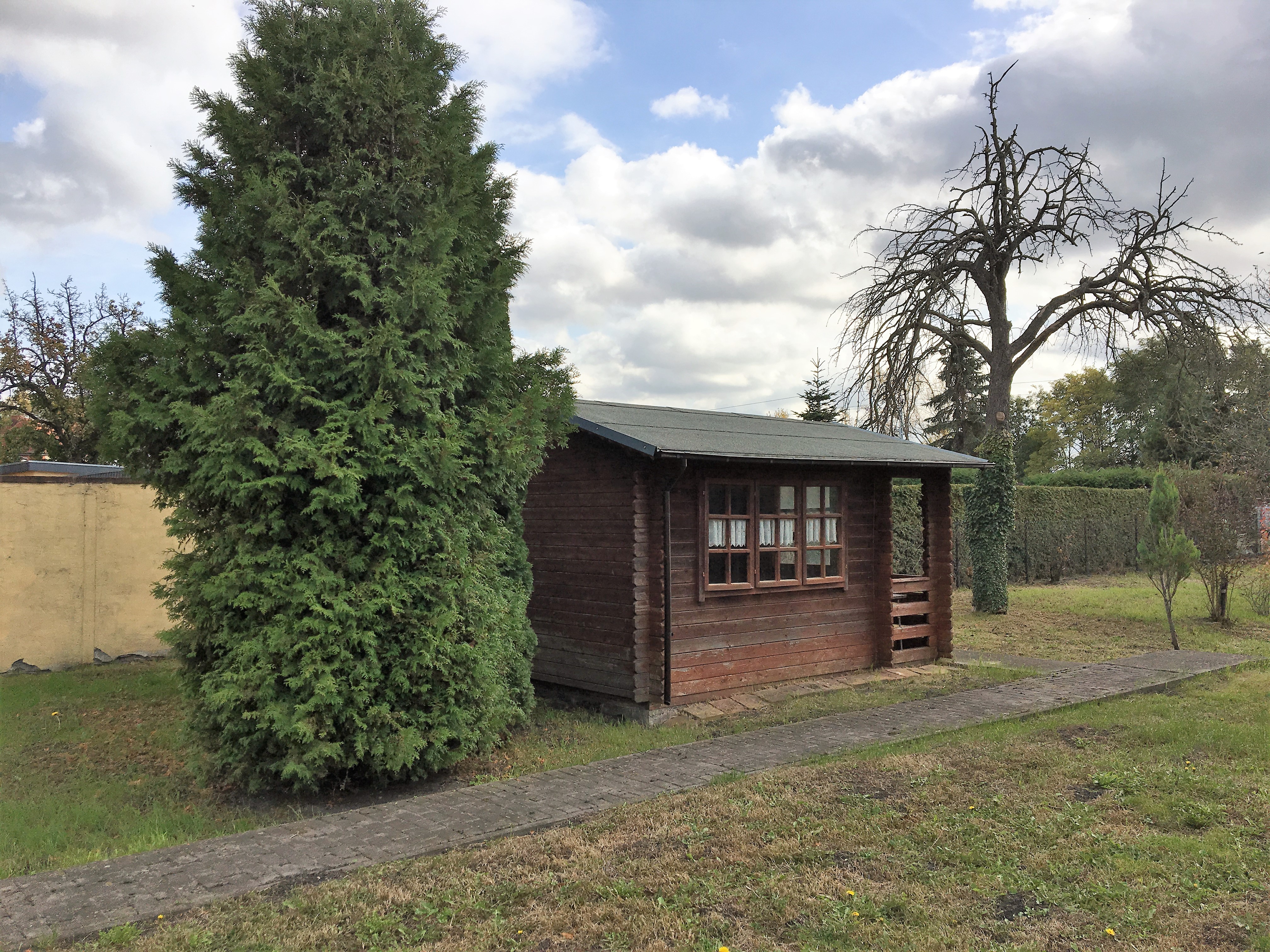 Zuletzt wurde das Grundstück als Garten genutzt. Es ist bebaut mit einer Gartenlaube und einem Geräteschuppen.
