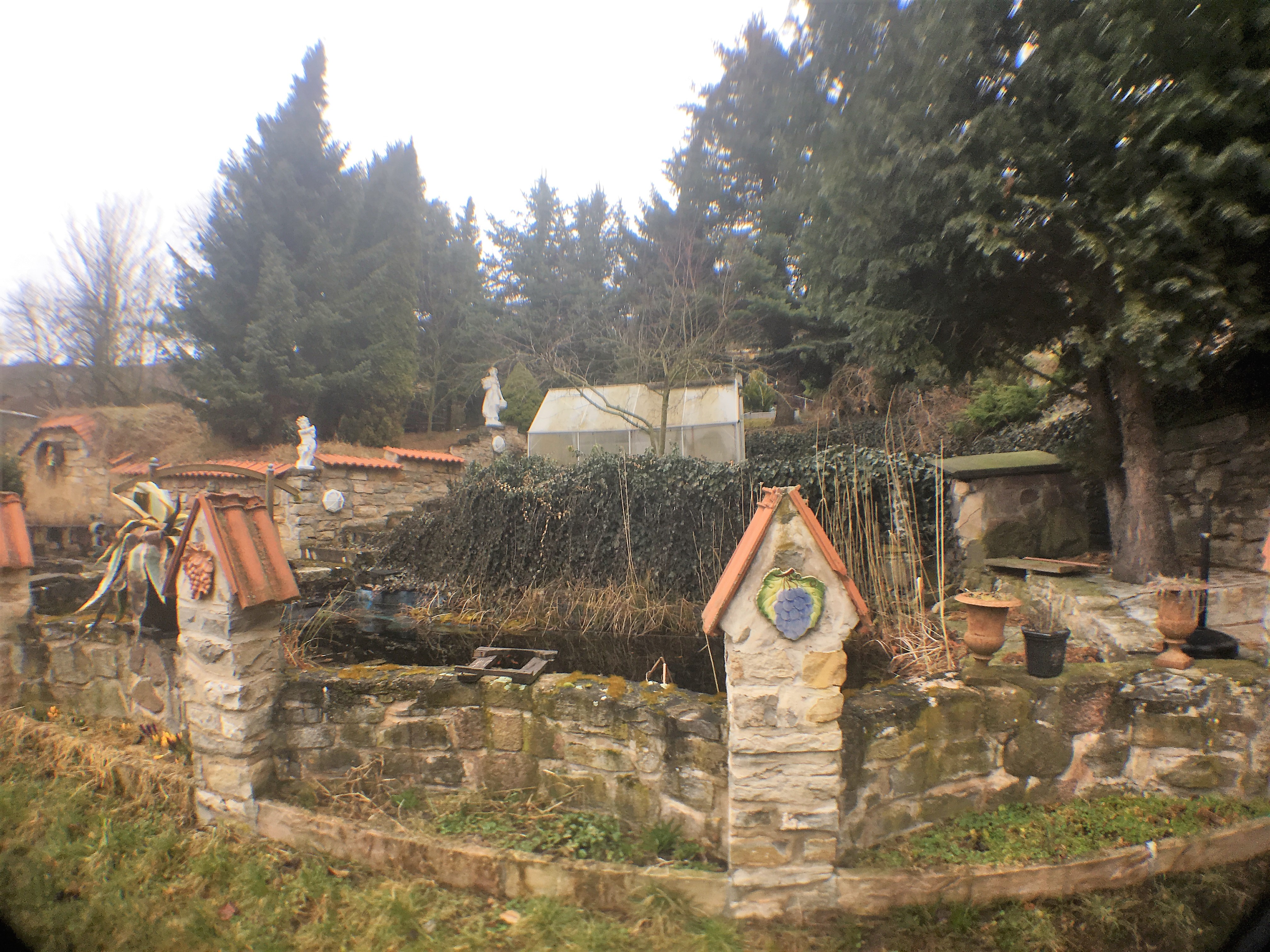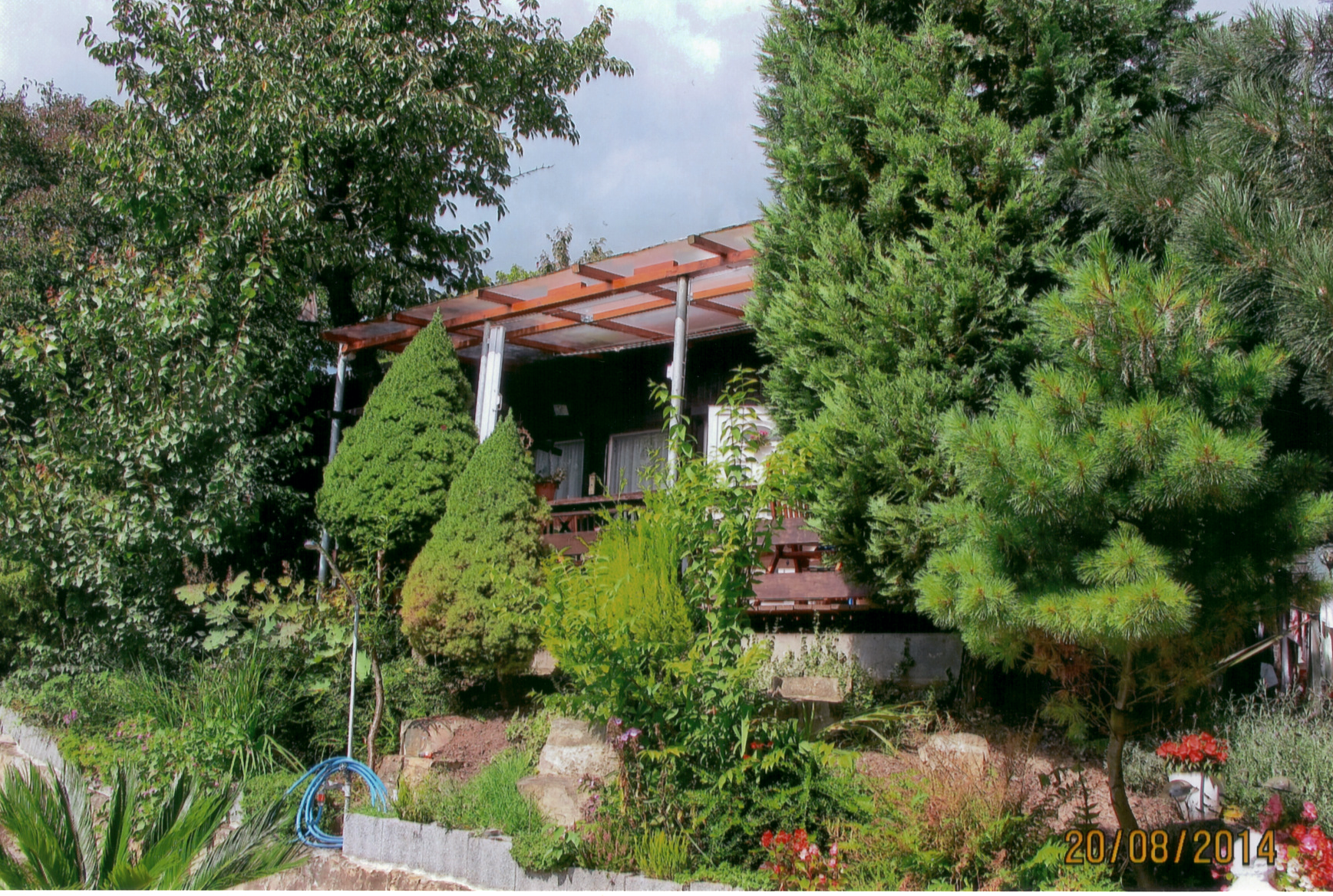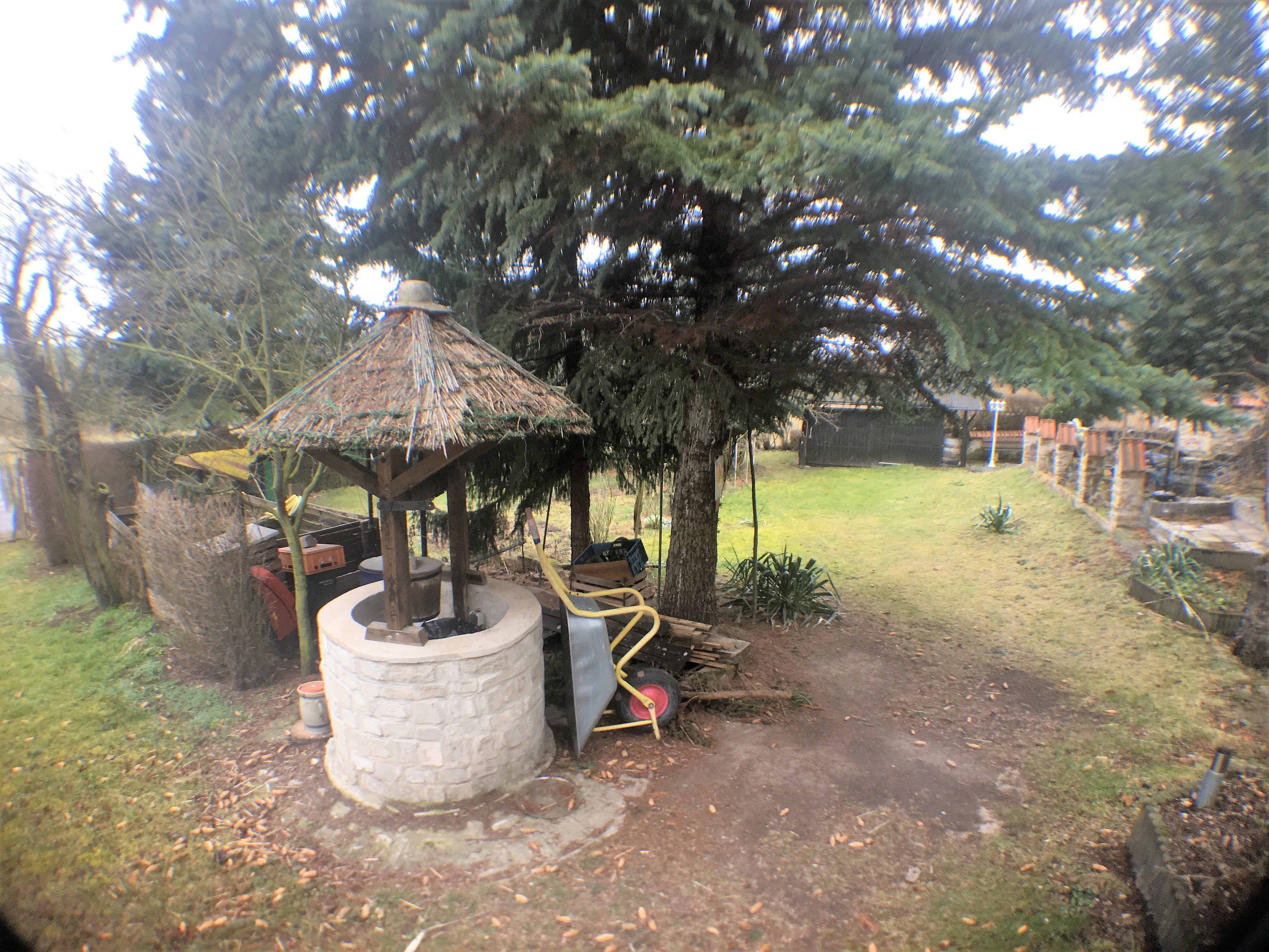 Das Gesamtgrundstück ist 3geteilt in einen Schmuck- und Erholungsgarten, einen Weinberg und Brachland. Es ist bebaut mit 2 urigen Weinberghütten, Wohnbungalow mit Terrasse, Pool 5×3,5×1,6, Carport, Party-Hütte, Grillterrasse und einem Goldfischteich. In einer der Weinberghütten wird selbst gekeltert, gelagert, gefeiert und an Gäste ausgeschenkt.