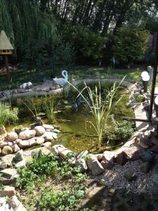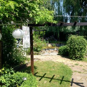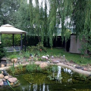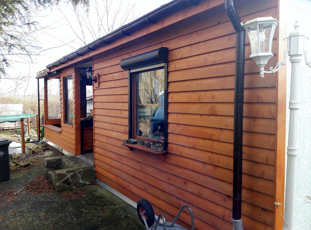 Auf dem komplett eingezäunten Grundstück befindet sich ein massiv errichteter Bungalow in einem sehr guten Zustand mit einer Wohnfläche von ca. 45 m², Einbauküche, Kamin und Kunststofffenstern mit Rollläden. Die Fassade ist gedämmt und das Dach wurde erneuert. Das geflieste Badezimmer ist mit einer Dusche ausgestattet und verfügt über ein Fenster. Auf dem Grundstück befinden sich noch ein Gartenhaus, ein Pavillon, eine Feuerstelle sowie zwei Geräteschuppen. Das ganze Grundstück ist sehr gepflegt und verfügt über einige Obstbäume und einen schönen Rosengarten. Ein ganz besonderer Blickfang ist der große Gartenteich!