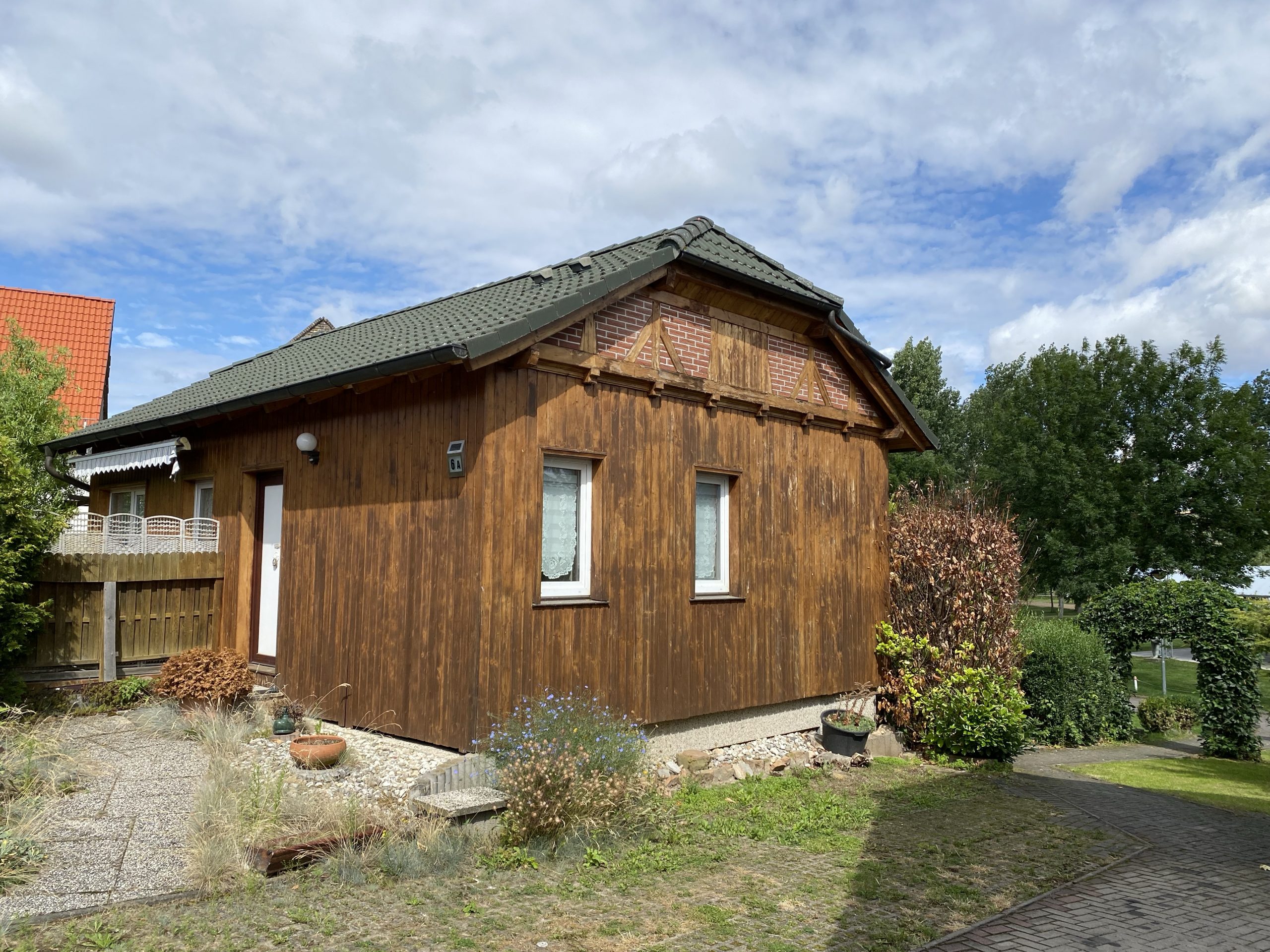 Neben einem gepflegten Bungalow in Holzbauweise (50m²) mit Küche, Wohn/Schlafraum, Toilette (Bad und Dusche), Flur und 2 Terrassen gibt es einen zuletzt als Werkstatt genutzten Flachbau, eine Garage, einen PKW-Stellplatz, Garten und Nebengelass. Der Bungalow ist komplett möbliert, und wird mit einer elektrischen Fußbodenheizung beheizt. Eine ganzjährige Nutzung, auch als Wohnsitz, ist möglich.